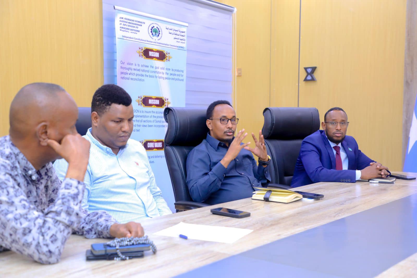 Muqdishu, Apriil 1, 2024: Gudoomiyaha Guddiga Madaxabannaan ee -u- eegista iyo Hirgalinta Dastuurka Avv. Burhan Adan Omar oo ay waheliyaan Gudoomiye ku xigeenka Mohammed Hassan Idriss , xubnaha Guddiga Madaxabannaan ee Dastuurka iyo xoghayaha Guud ee Guddiga Abdulkadir Mohamed Hassan ayaa kulan mahadcelin ah la qaatey hawl- waddeena guddiga kuna amaanay shaqadii baaxada lahayd ee ay qabteen muddadii lagu guda jiray doodahii Baarlamaanka, latashiyadii iyo aragtiyihii dadweynaha sidii quruxda badnayd ee ay u diwaan-galinyeen aragtiyhii iyo soo jeedimihii waliba qaab casriyeysan oo reebaysa taariikh iyo tixraac keyd ah.