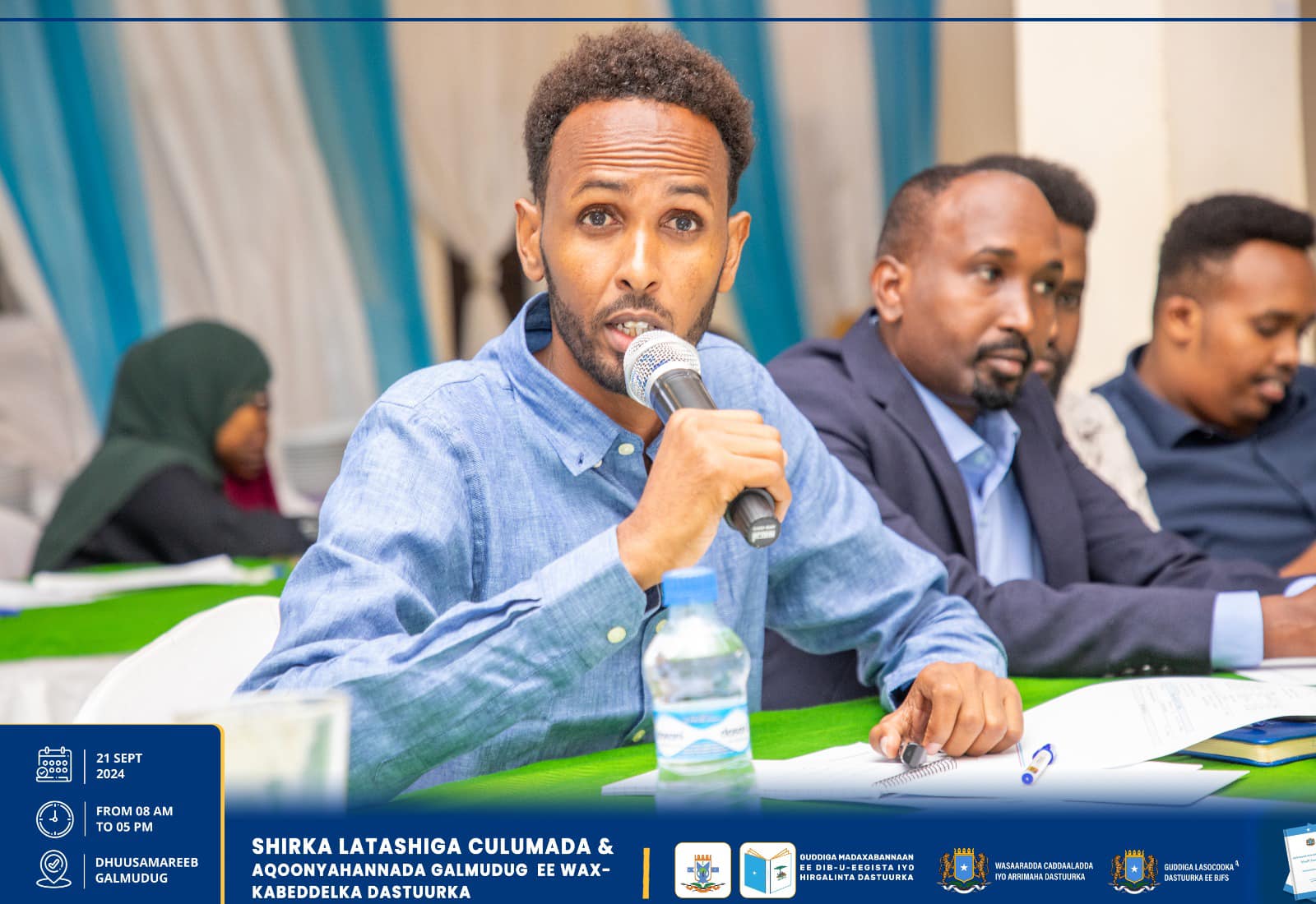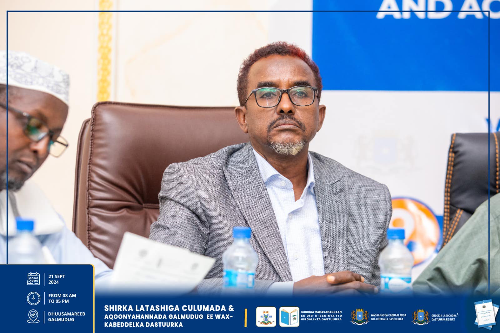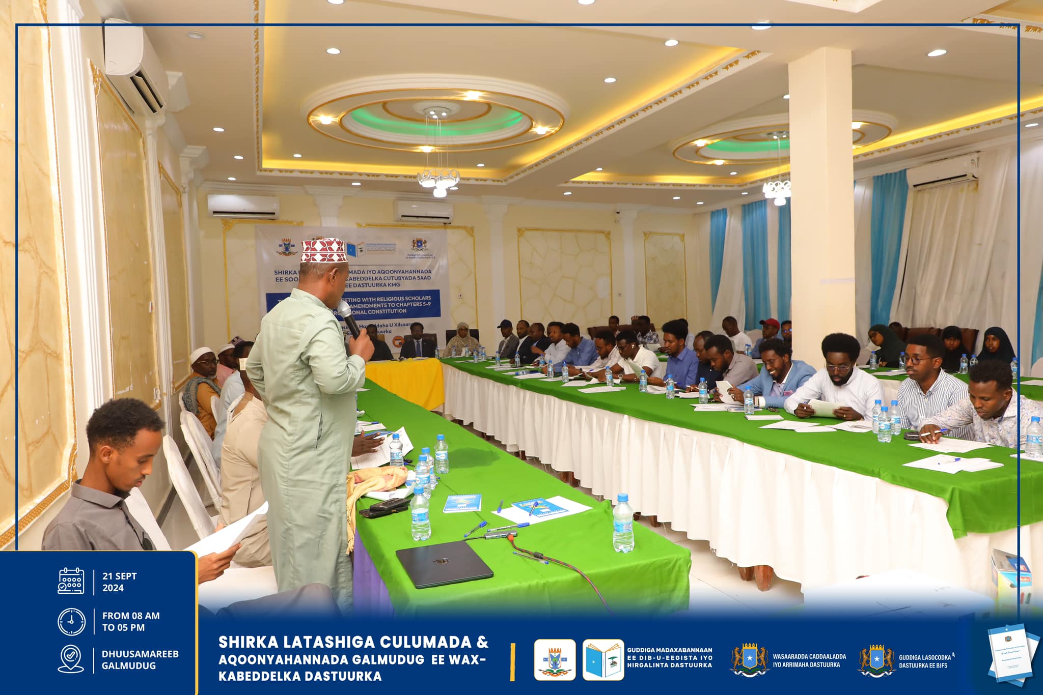 Dhuusamareeb , Sebteembar 21, 2024, Hay’adaha u xilsaaran Dib-u-eegista Dastuurka ee kala ah Guddiga Madaxabannaan ee Dib-u-eegista iyo Hirgelinta Dastuurka, Guddiga Lasocodka Dastuurka ee Baarlamaanka iyo Wasaaradda Caddaaladda iyo Arr. Dastuurka, ayaa maanta si wadajir ah u daahfuray shirka Latashiga Culumaa’udiinka iyo Aqoonyahanka Galmudug ee ku saabsan diyaarinta Wax-kabeddelka Cutubyada 5aad – 9aad ee Dastuurka.