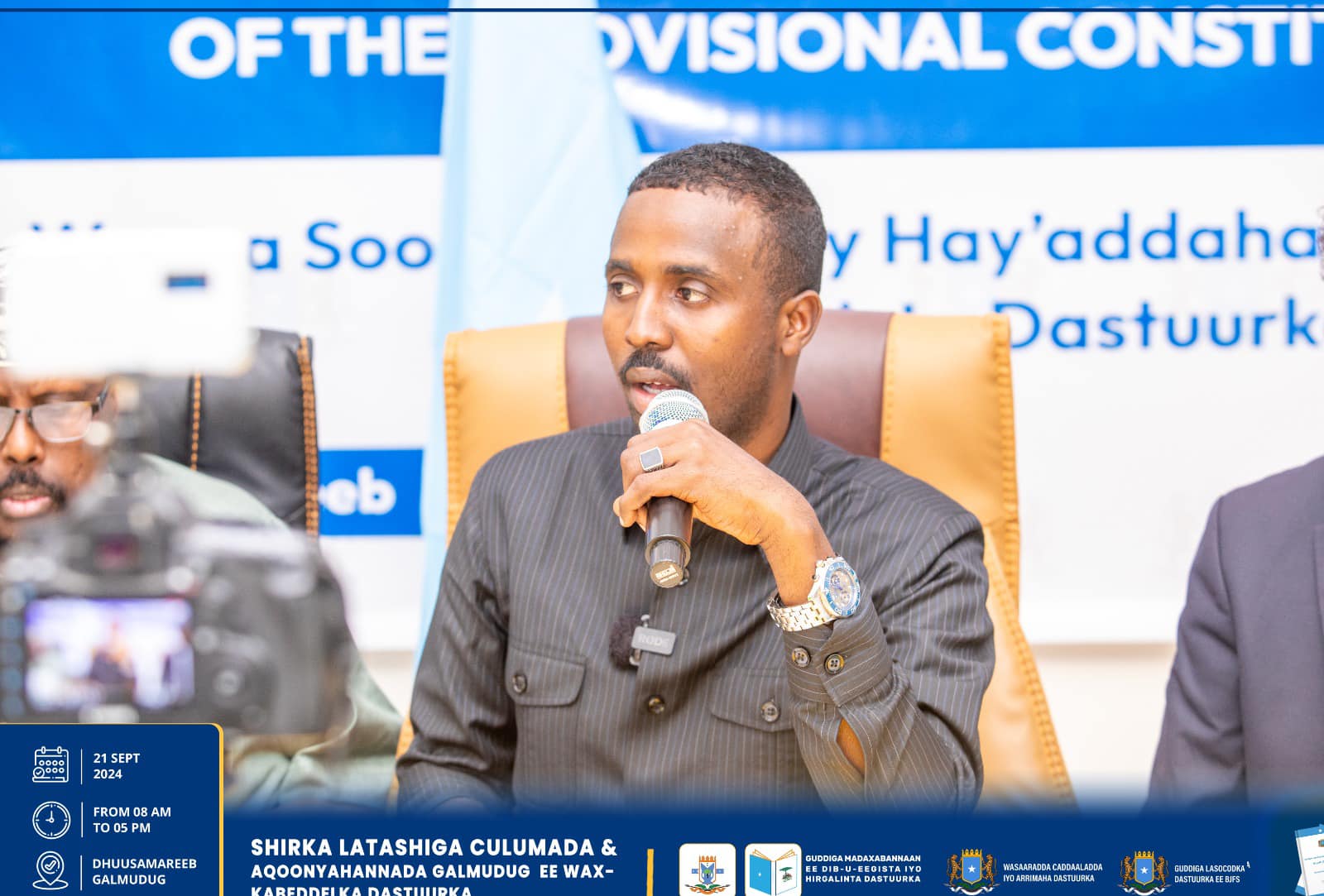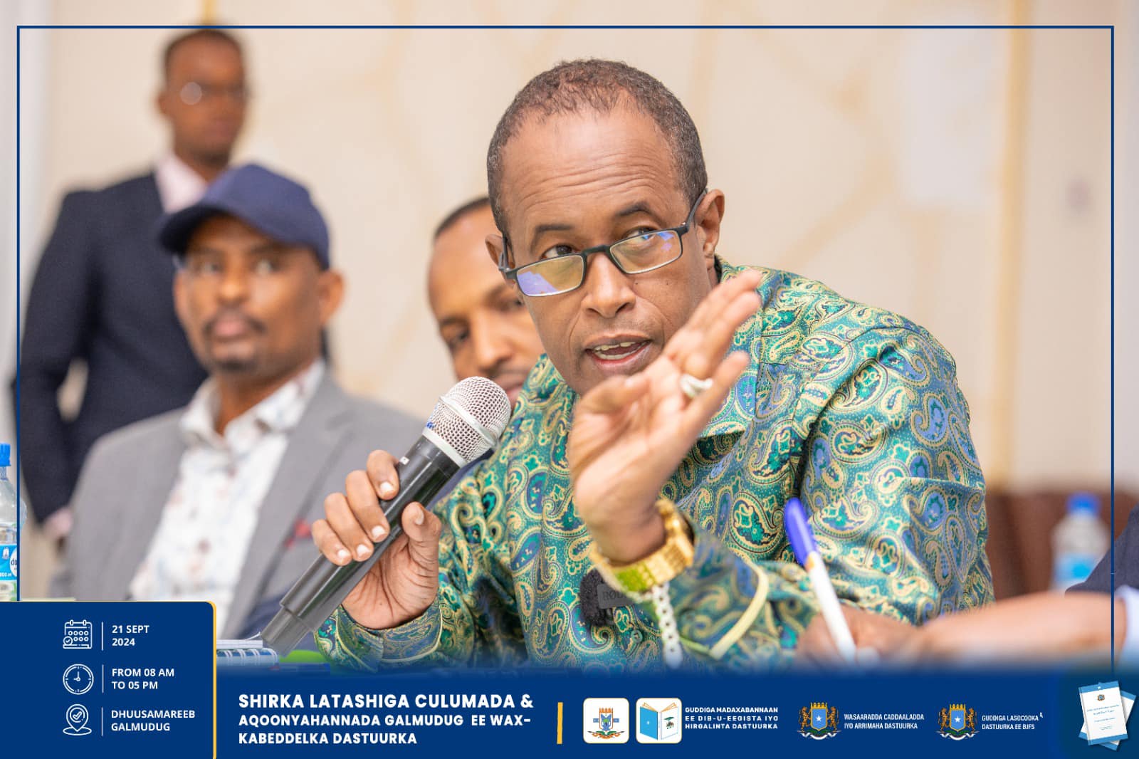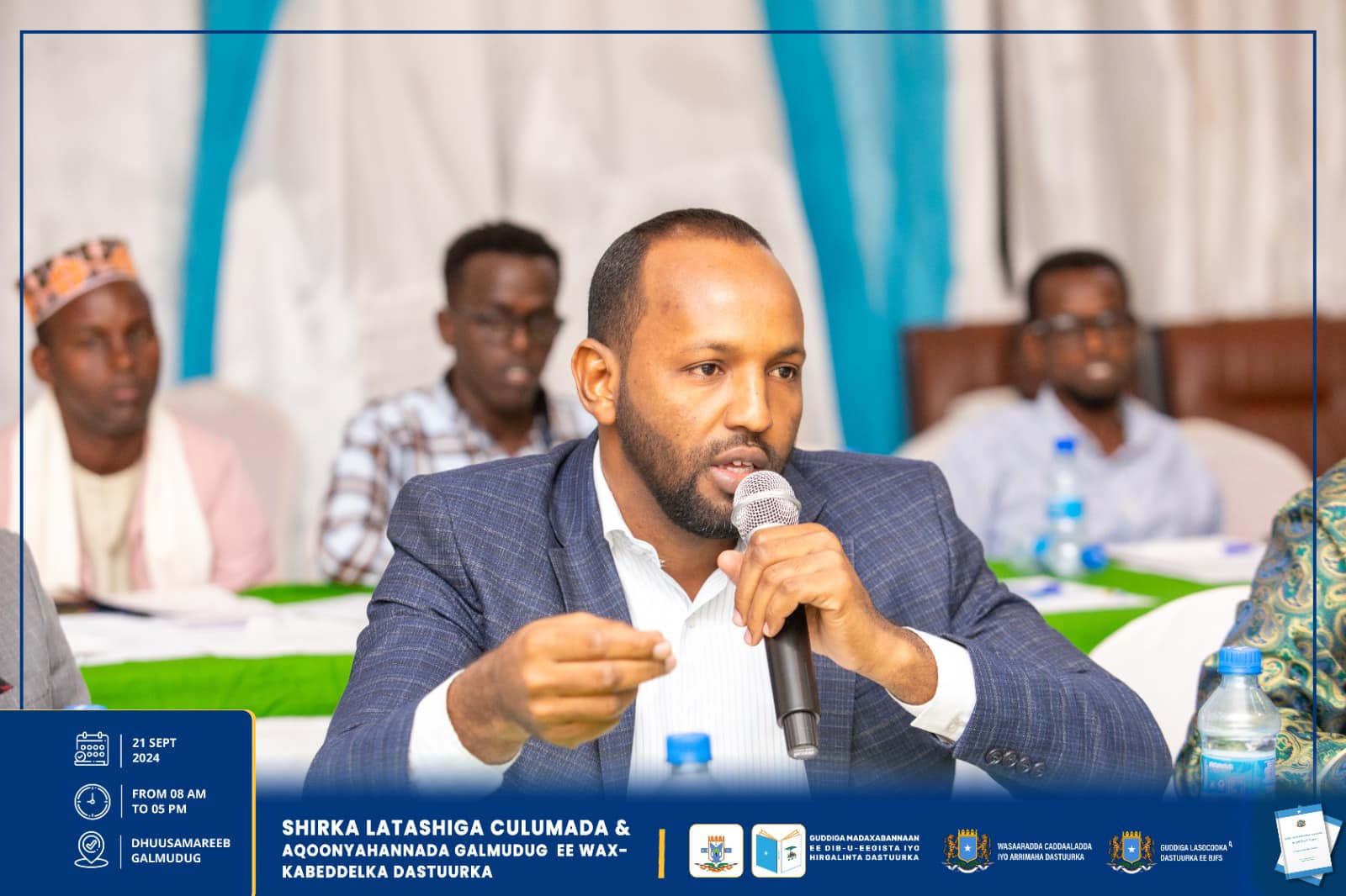 Dhuusamareeb , Sebteembar 21, 2024, Hay’adaha u xilsaaran Dib-u-eegista Dastuurka ee kala ah Guddiga Madaxabannaan ee Dib-u-eegista iyo Hirgelinta Dastuurka, Guddiga Lasocodka Dastuurka ee Baarlamaanka iyo Wasaaradda Caddaaladda iyo Arr. Dastuurka, ayaa maanta si wadajir ah u daahfuray shirka Latashiga Culumaa’udiinka iyo Aqoonyahanka Galmudug ee ku saabsan diyaarinta Wax-kabeddelka Cutubyada 5aad – 9aad ee Dastuurka.