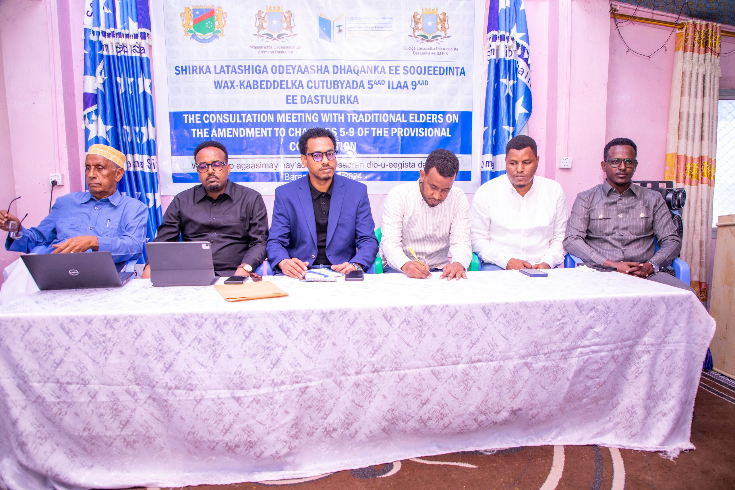 Baraawe , October 31, 2024 , Hay’adaha u xilsaaran Dib-u-eegista Dastuurka ee kala ah, Guddiga Madaxabannaan ee Dib-u-eegista iyo Hirgelinta Dastuurka, Guddiga Lasocodka Dastuurka ee Baarlamaanka iyo Wasaaradda Cadaaladda iyo Arr. Dastuurka oo ay waheliso Wasaaradda Arrimaha Dastiurka Koonfur Galbeed ayaa si wadajir ah uga daahfuray, magaalada Baraawe ee Caasimada Dowlad Gobaleedka Koonfur Galbeed Soomaaliya, Shirka La-Tashiga Odeyaasha Dhaqanka ah ee ku saabsan diyaarinta Wax-kabeddelka Cutubyada 5aad – 9aad ee Dastuurka.